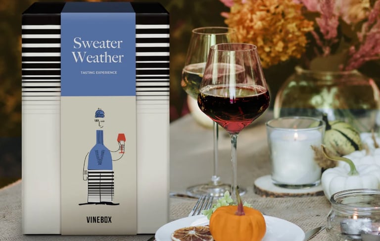 Sweater Weather Box contains 6 100ml tubes of wine - 5 red and 1 white